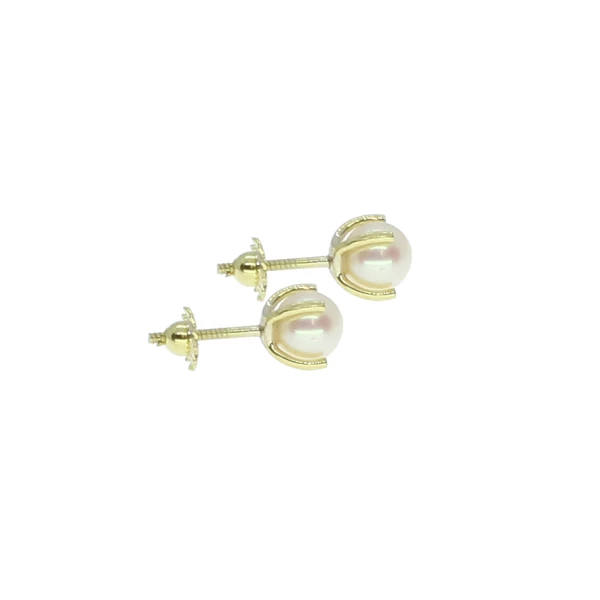 Caravanas en oro 18 Kilates con perlas de cultivo de 6 mm. y cuatro puntas. Con sistema de cierre a rosca.