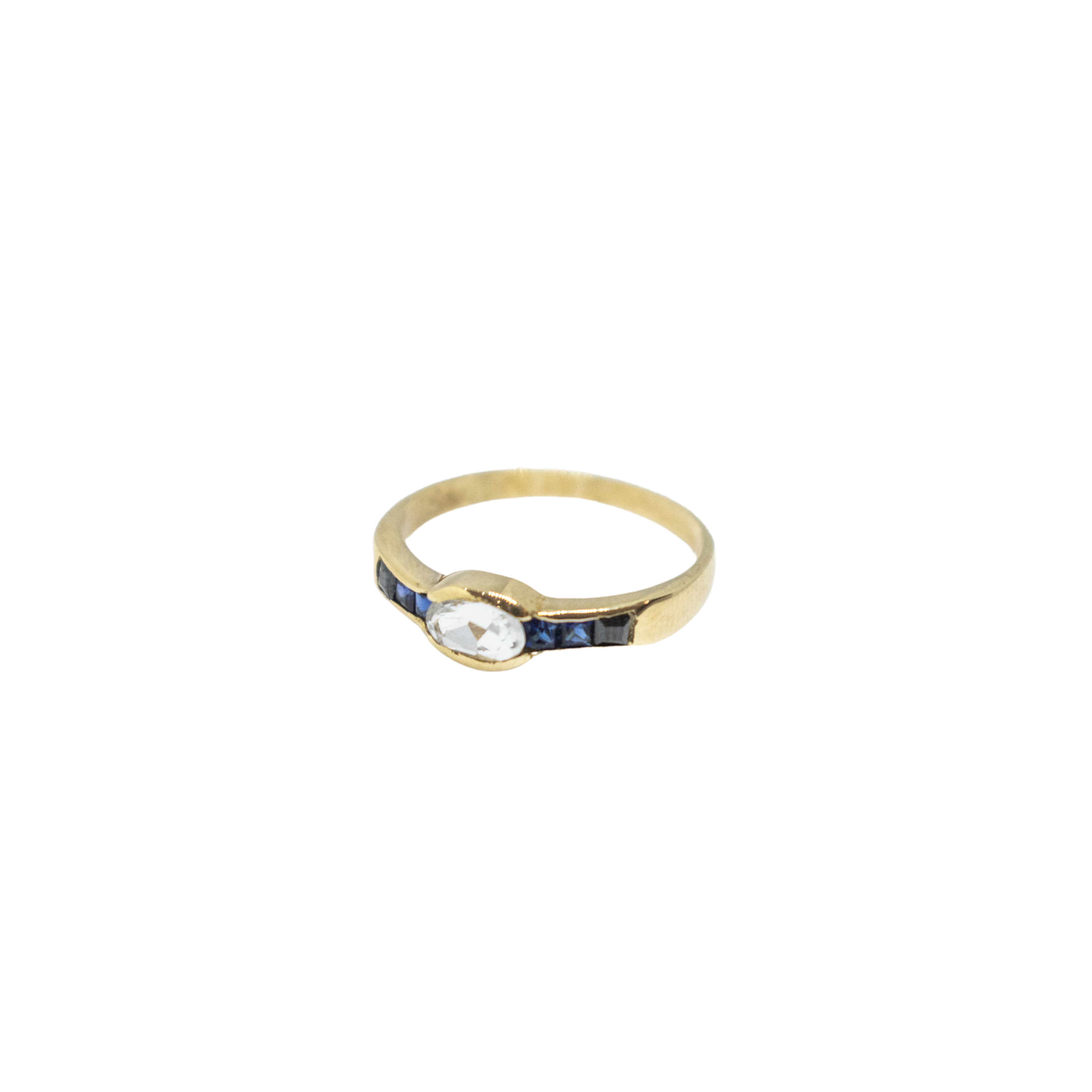 Anillo en oro 12 kilates, con Zafiros azules y Circonias.
