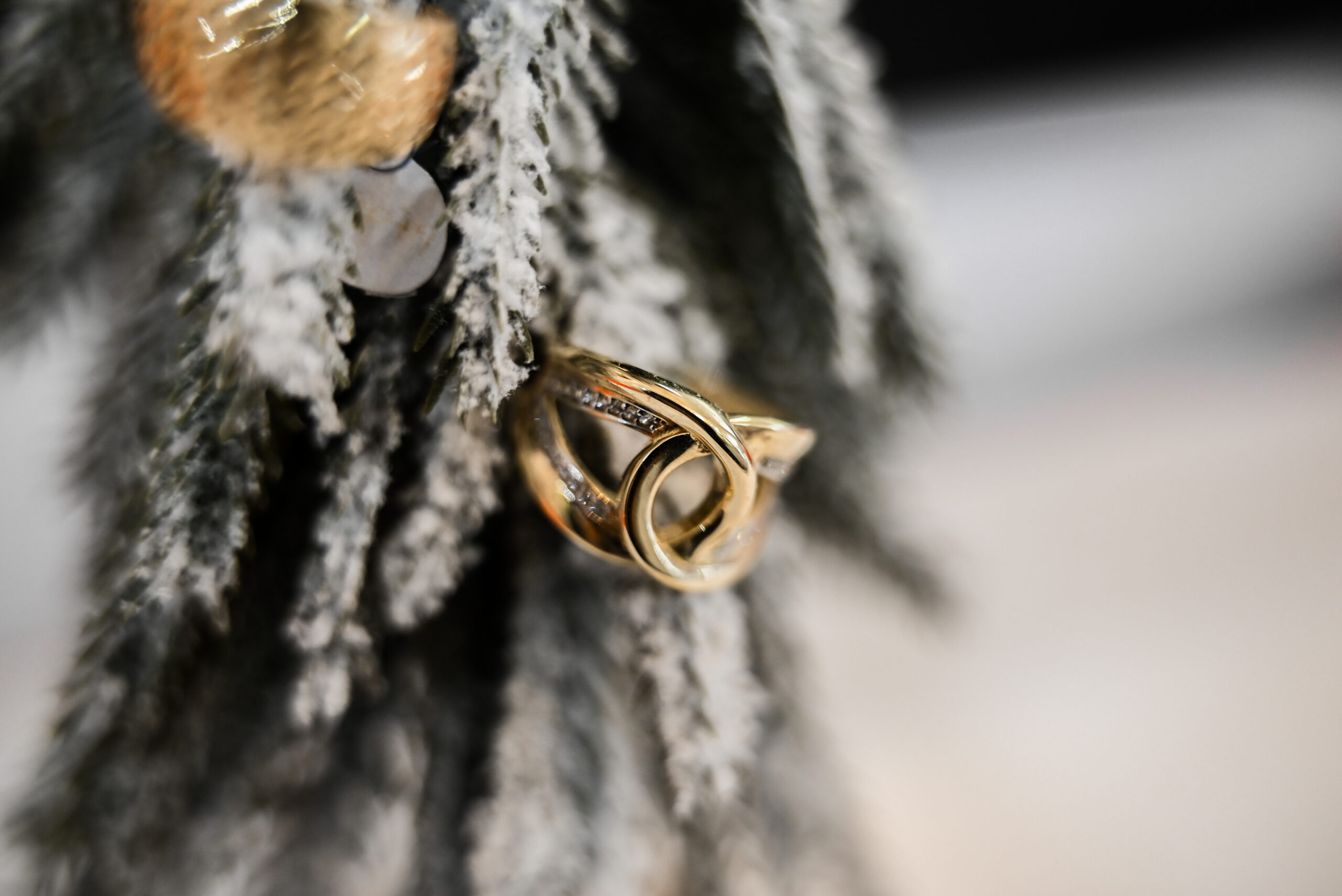 Anillo de oro 12 kilates y Circonias modelo entrelazado.