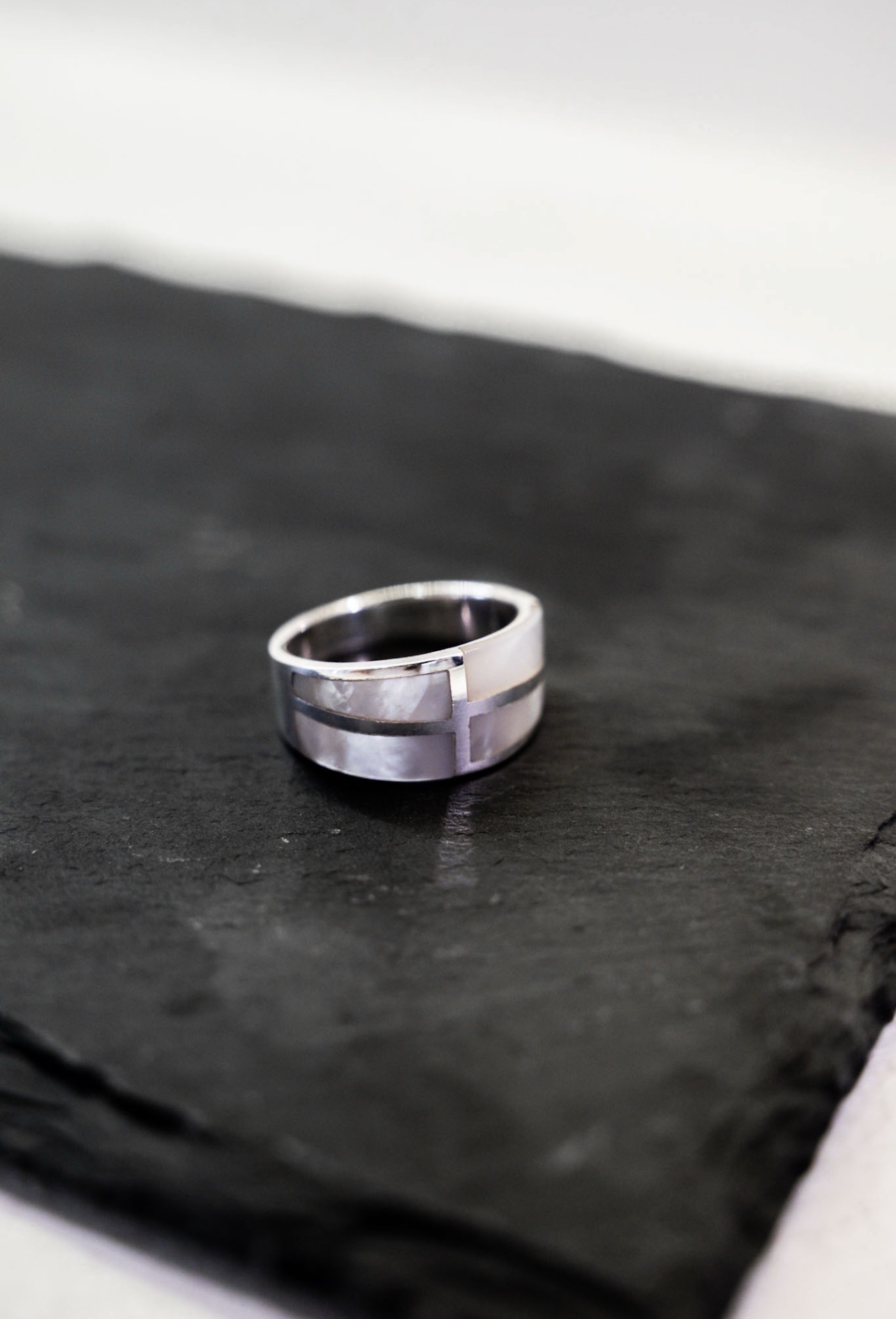 Anillo de plata con apliques de Nácar asimétricos.