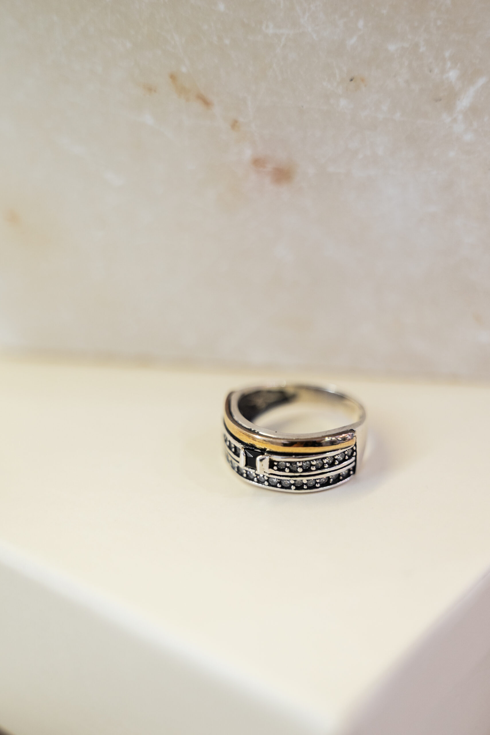 Anillo de plata y oro, con Circonias y Ónix cantidad