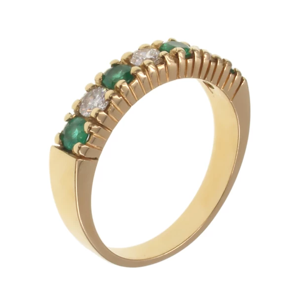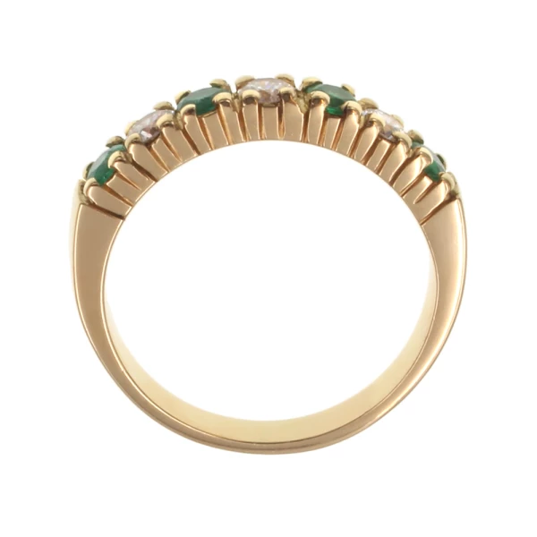 Anillo Medio Sin Fin en oro 18 Kilates con brillantes y Esmeraldas