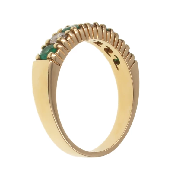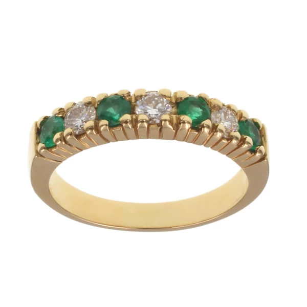 Anillo «Medio Sin Fin» clásico, en oro 18 Kilates con brillantes y Esmeraldas.