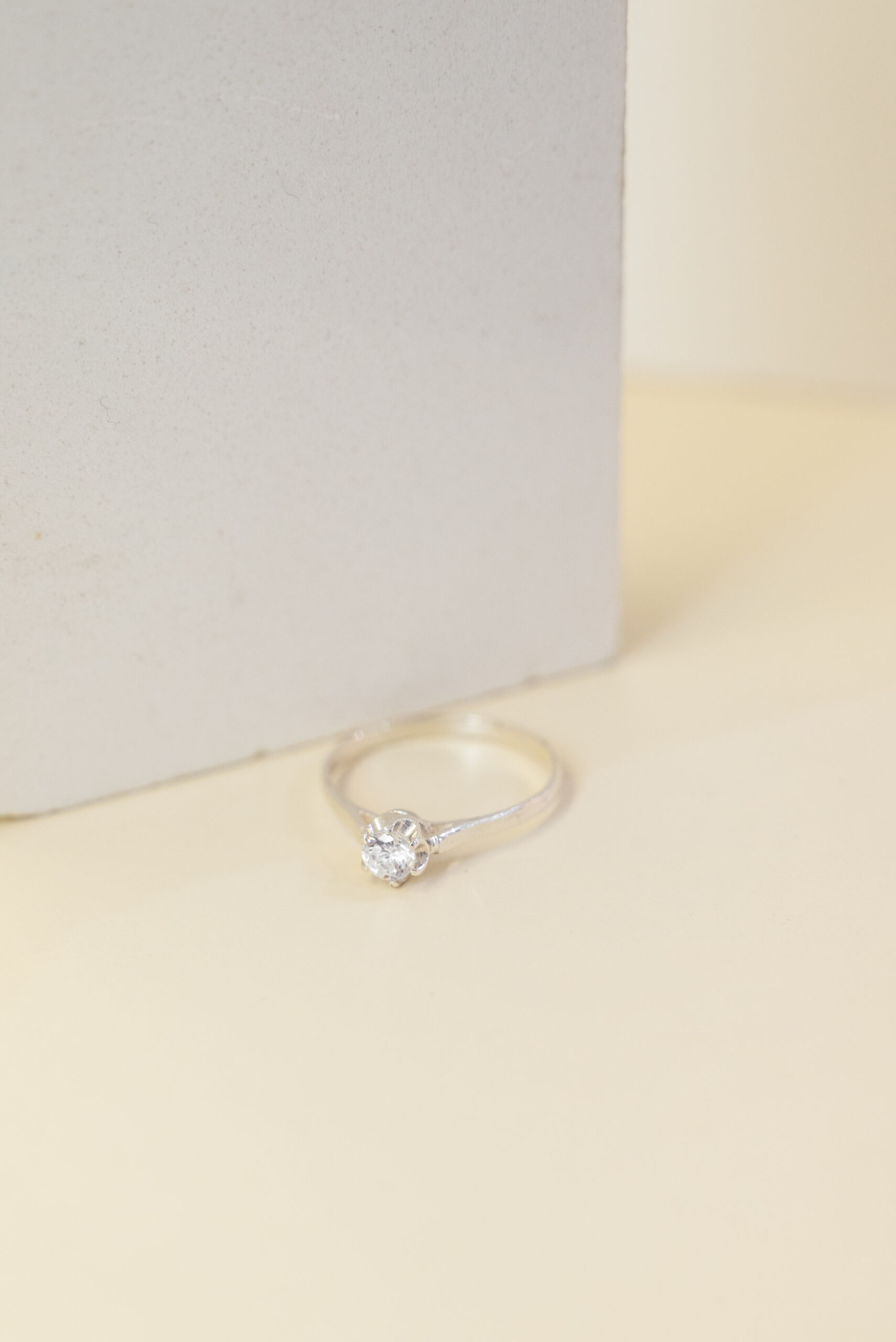 Anillo en plata, fino, con Circonia. Modelo “Solitario”.