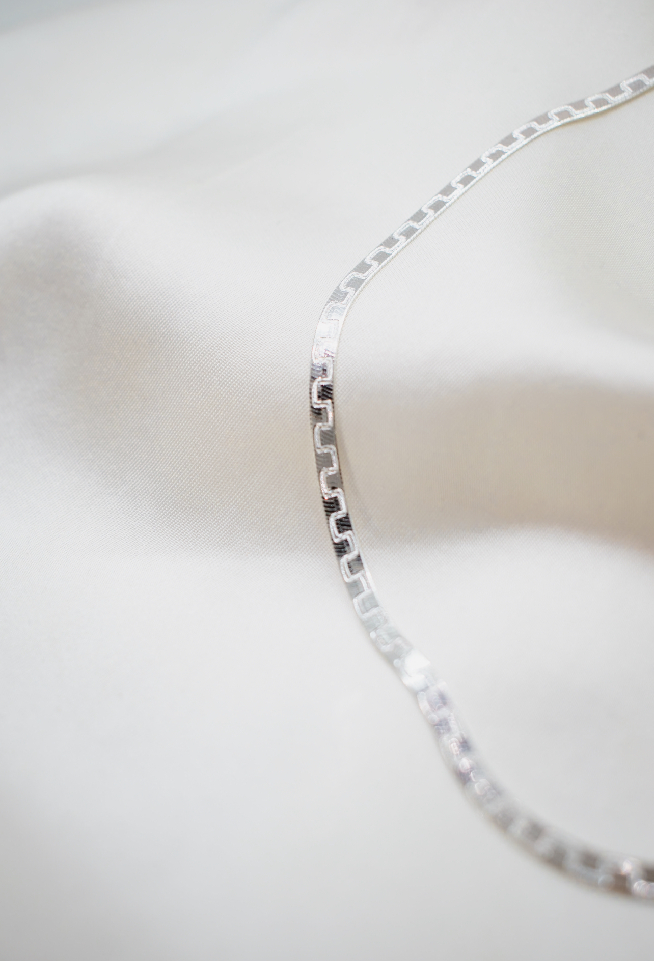 Cadena modelo cinta de plata labrada de un lado y pulida del otro (reversible).