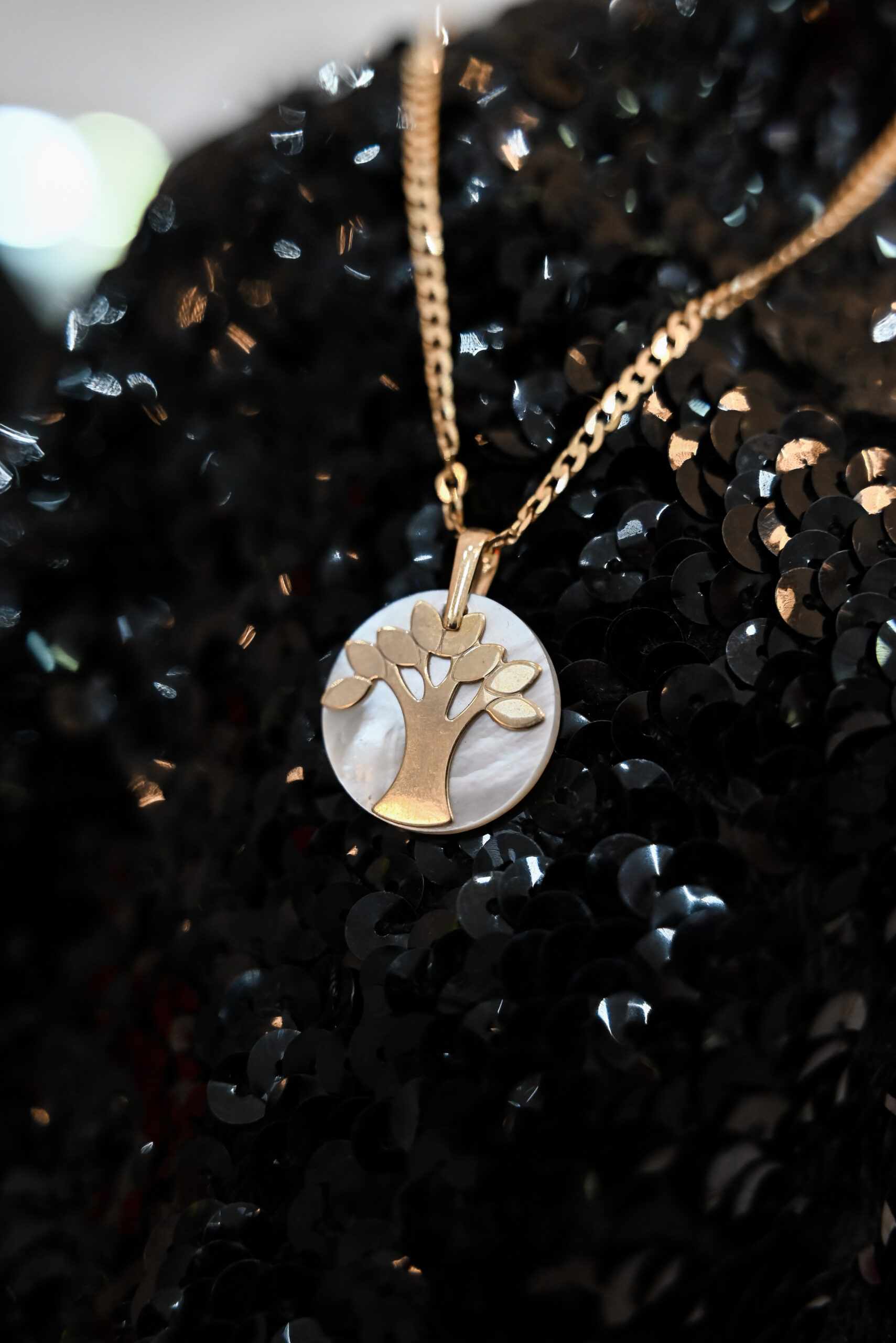 Cadena de oro 12 kilates + colgante de Árbol de la Vida en oro y Nácar.