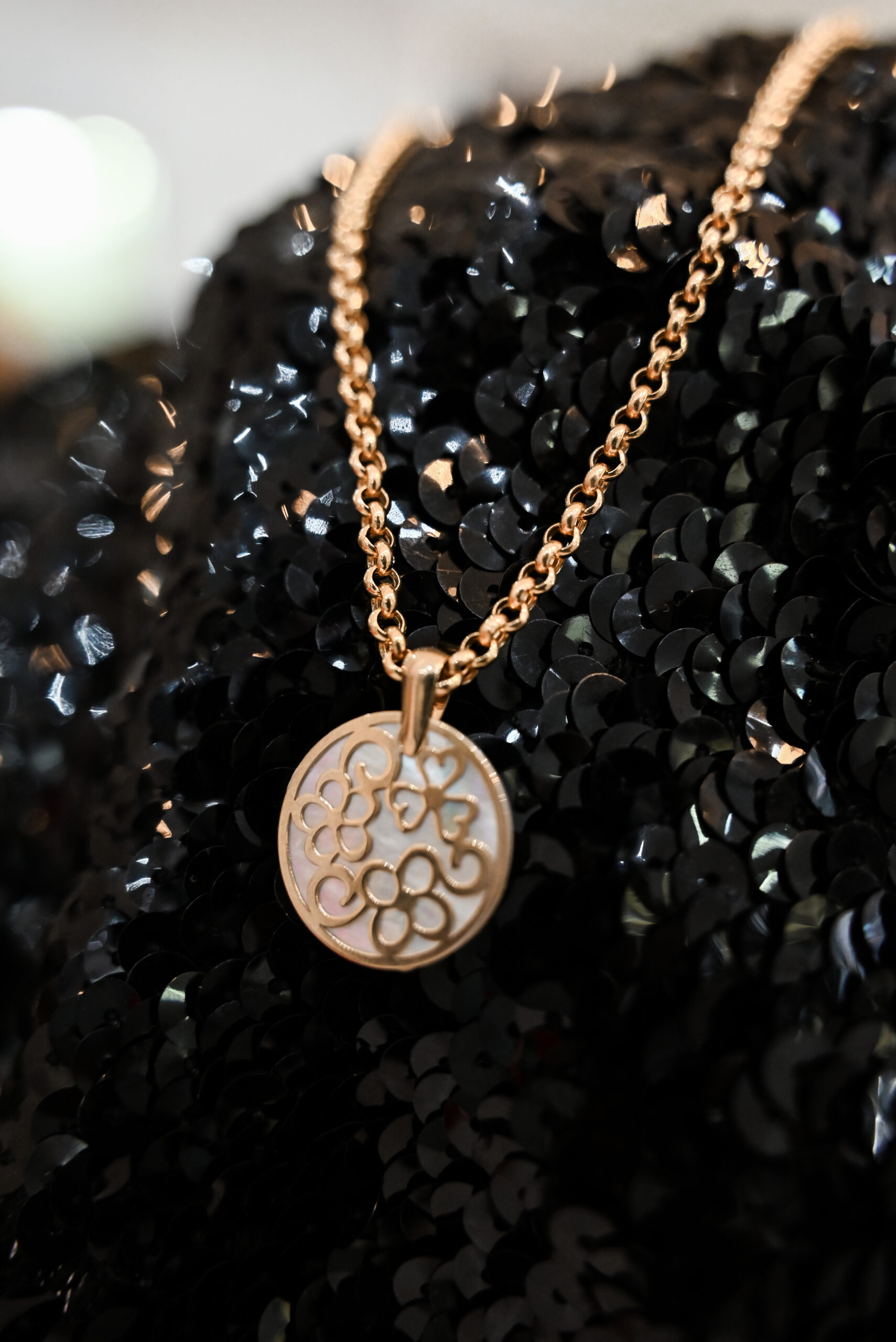 Cadena de oro 12 kilates + colgante de oro y Nácar.