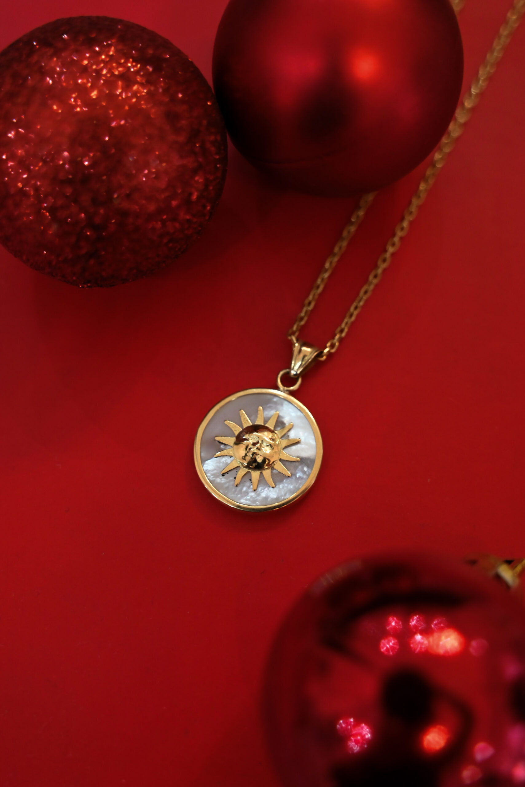 Cadena de oro + colgante Sol en oro y nácar