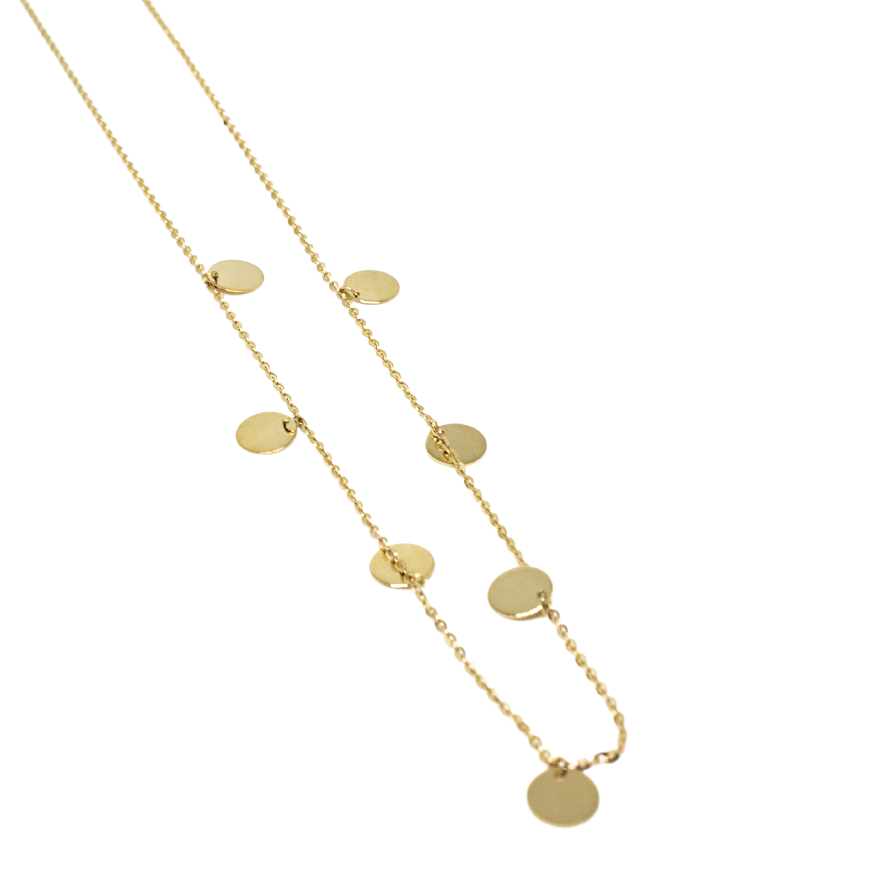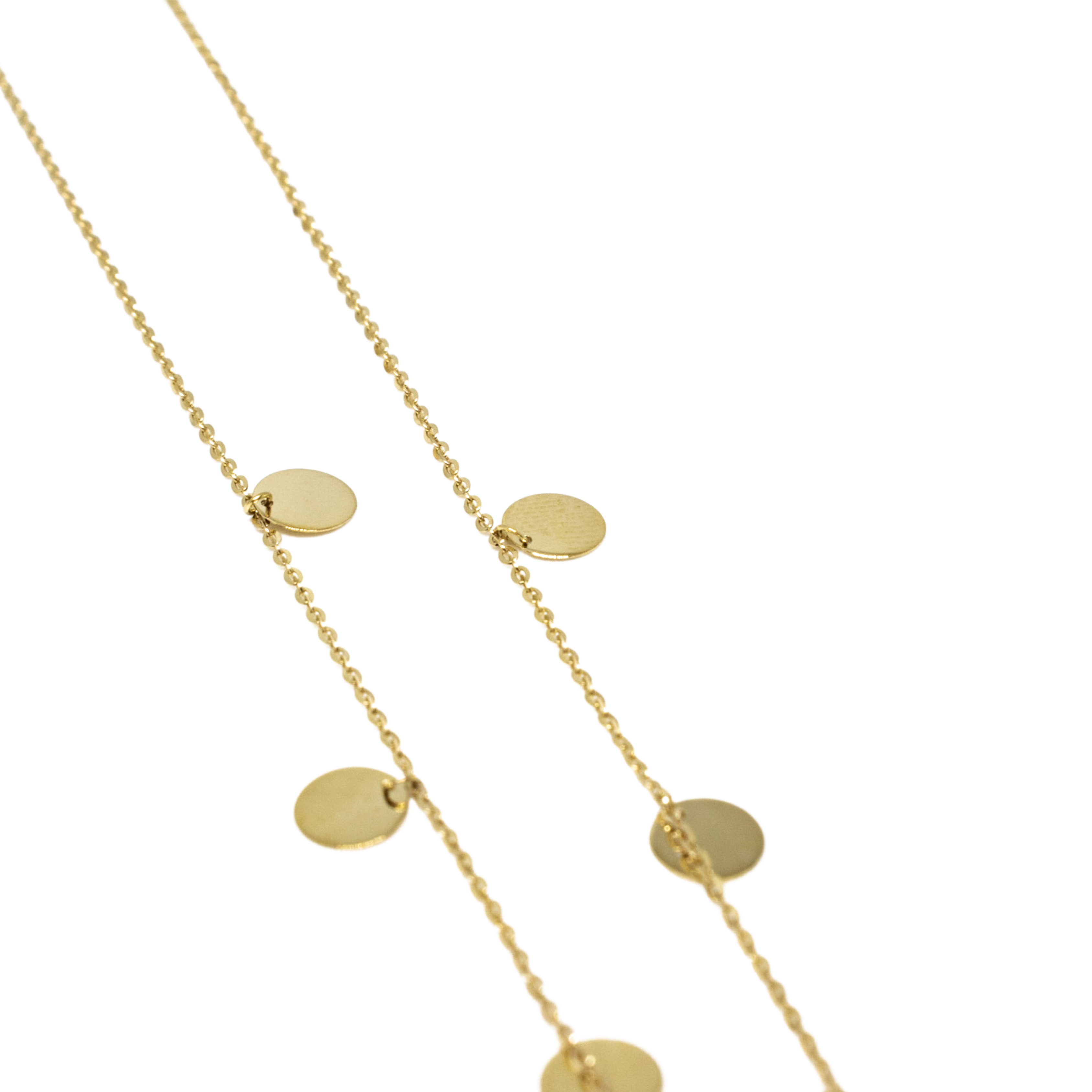 Cadena fina de oro 12 kilates con medallitas. Largo: 45 cm.