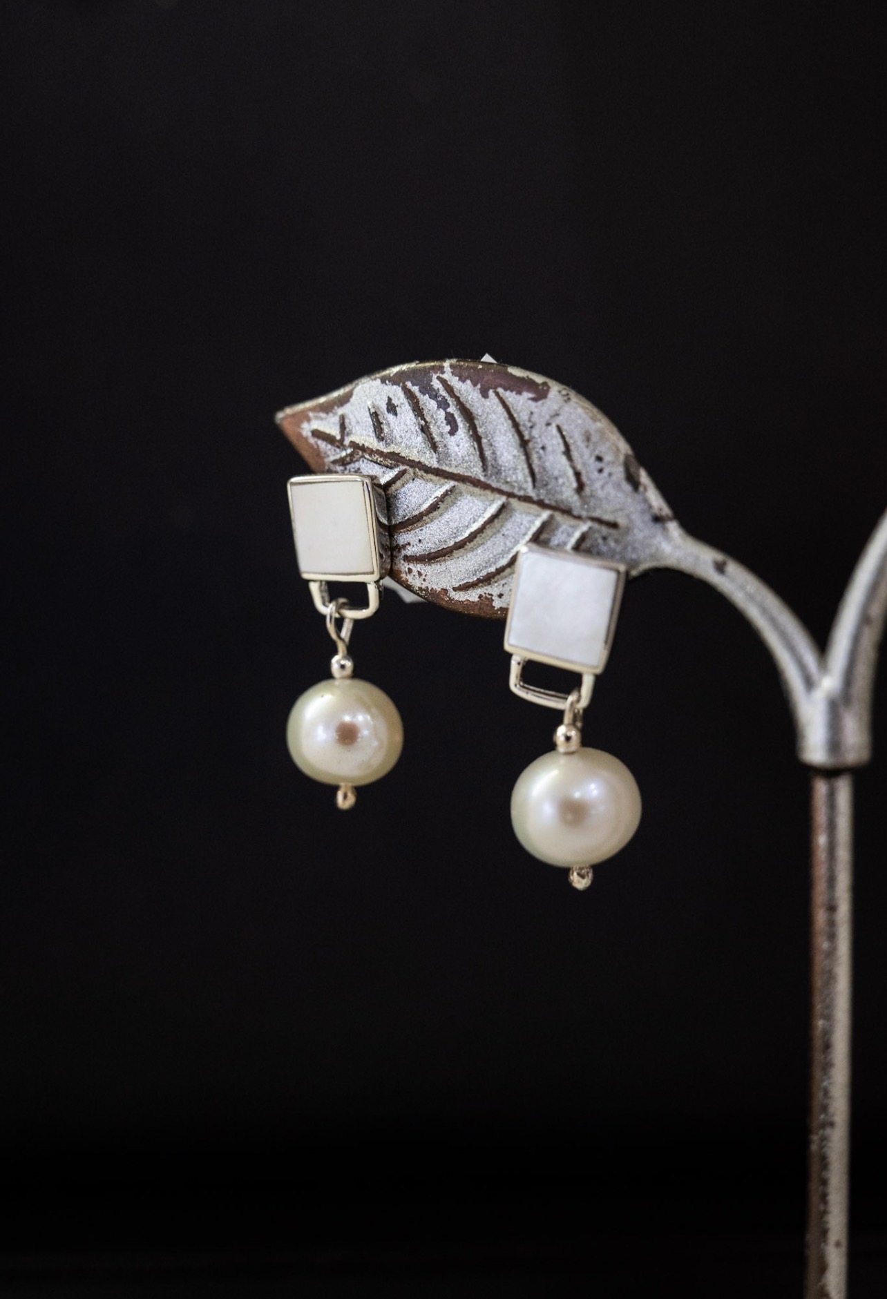 Caravanas de plata, con perla de cultivo colgante y cuadrado de Nácar.