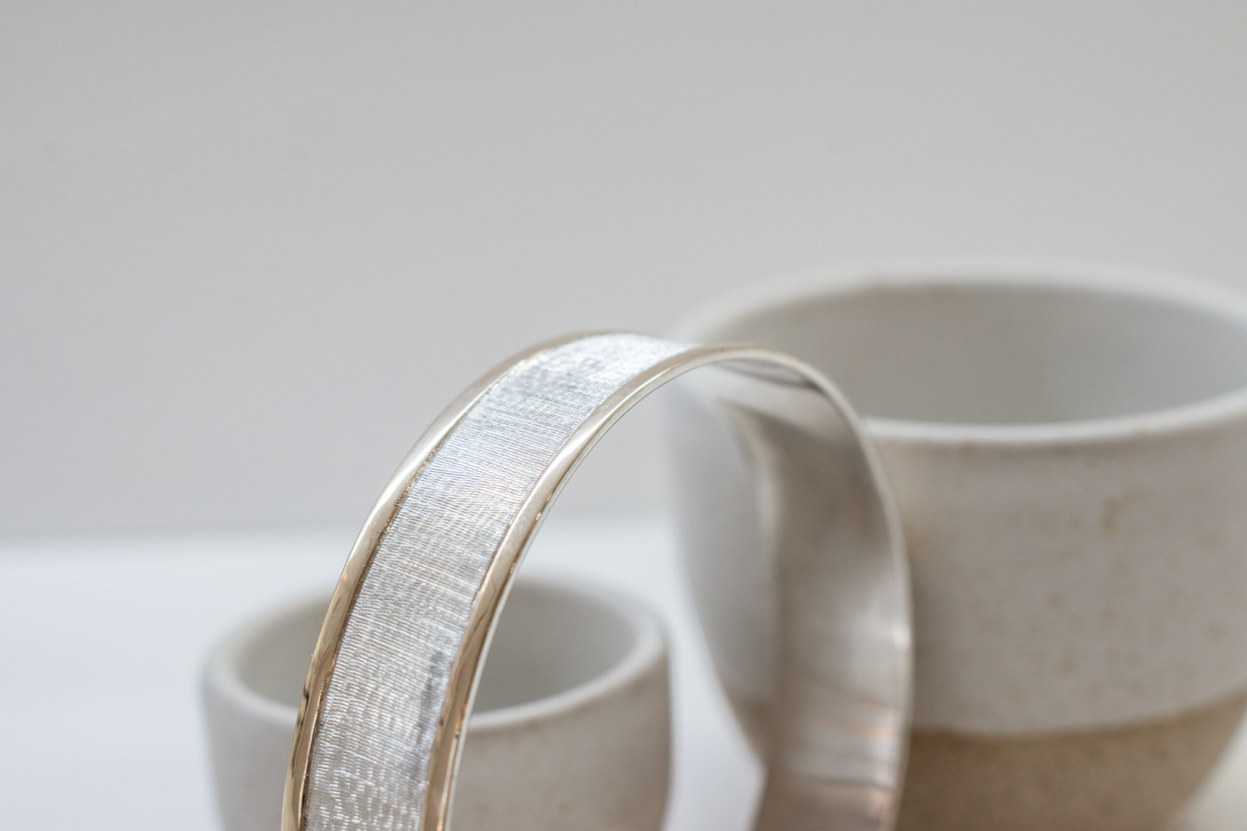 Esclava de plata con bordes de oro macizo de 9 kilates de 1,5 cm. de ancho.
