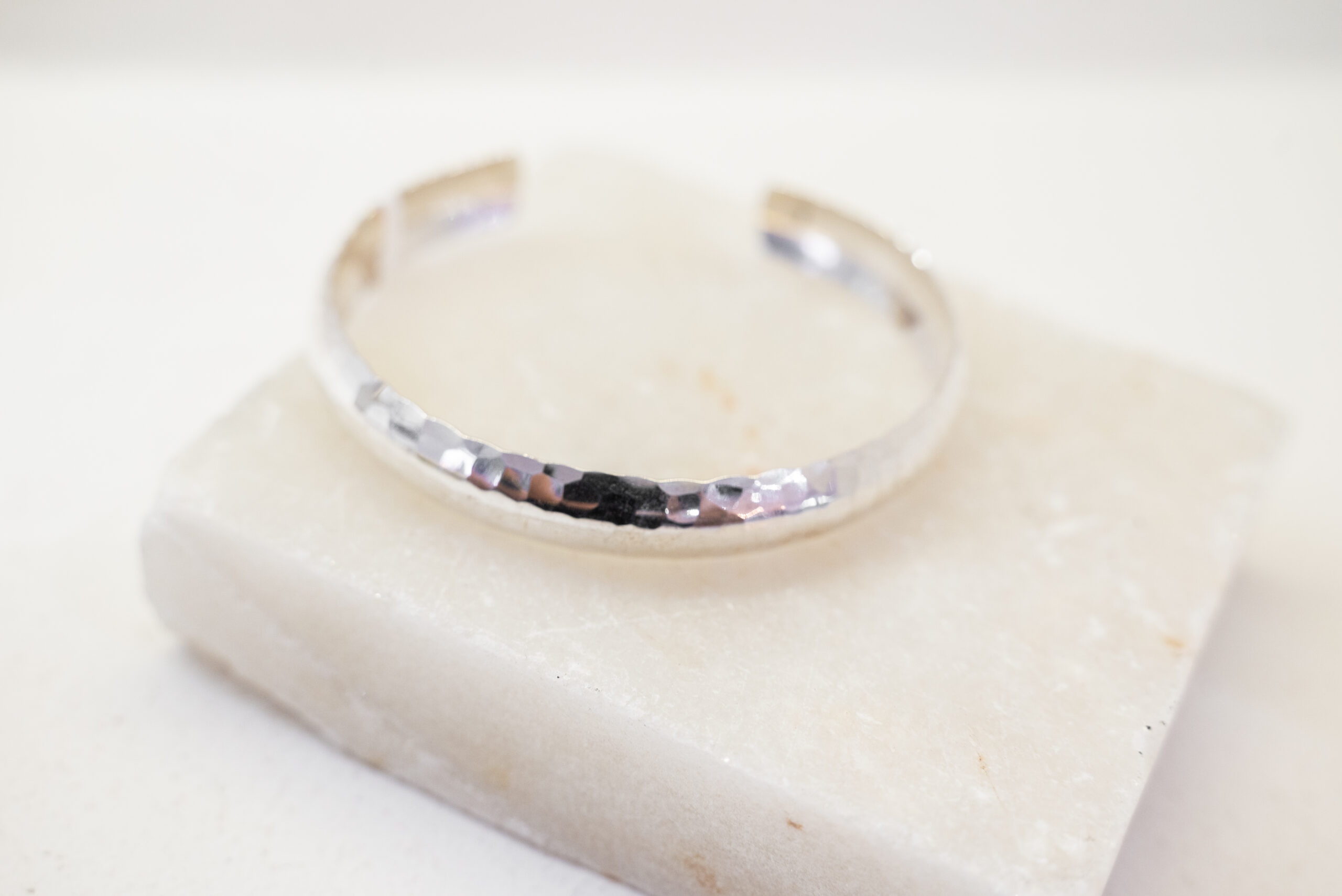 Esclava de plata martillada, modelo semi-cerrado.