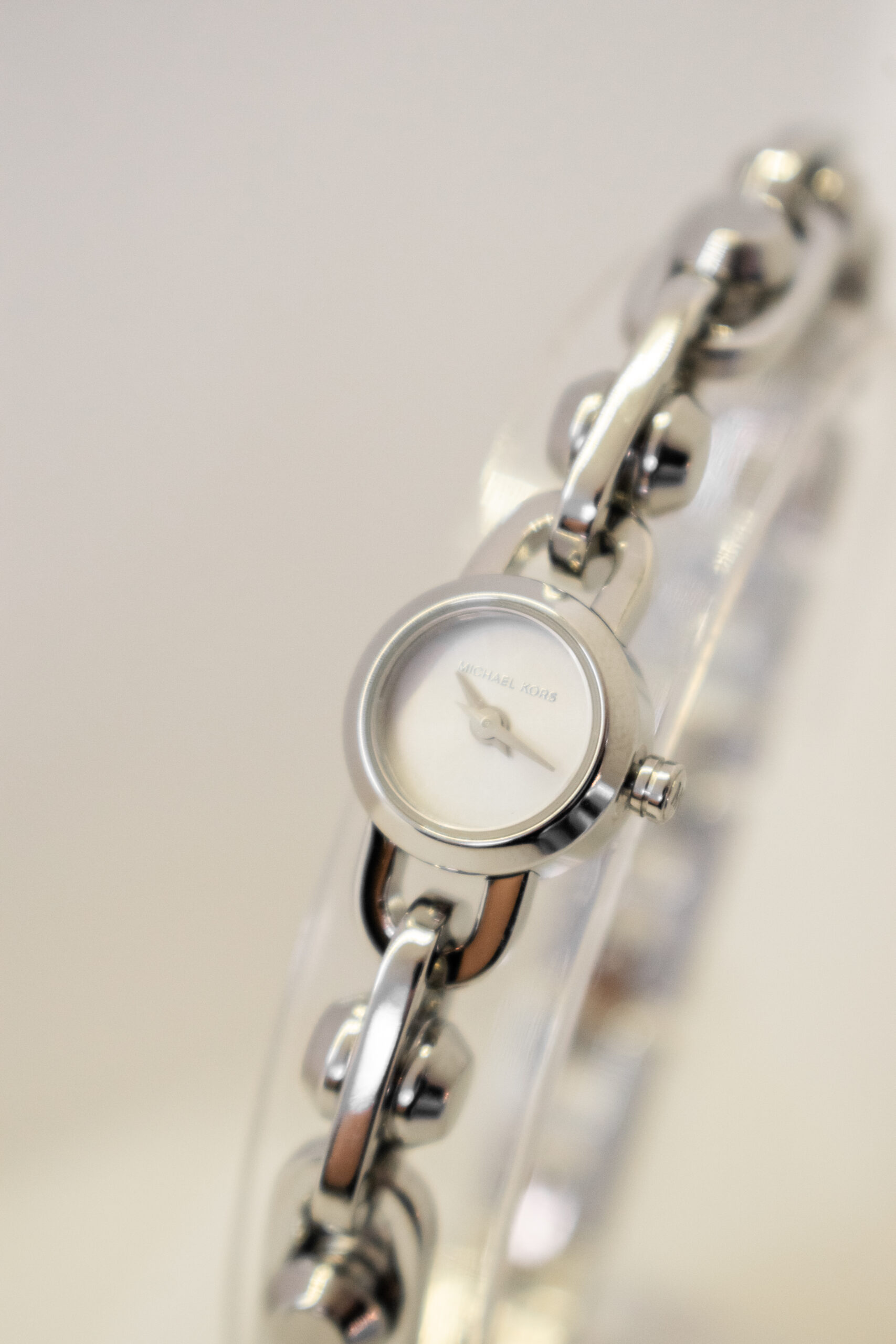 Reloj plateado de dama, marca Michael Kors (nuevo ingreso).
