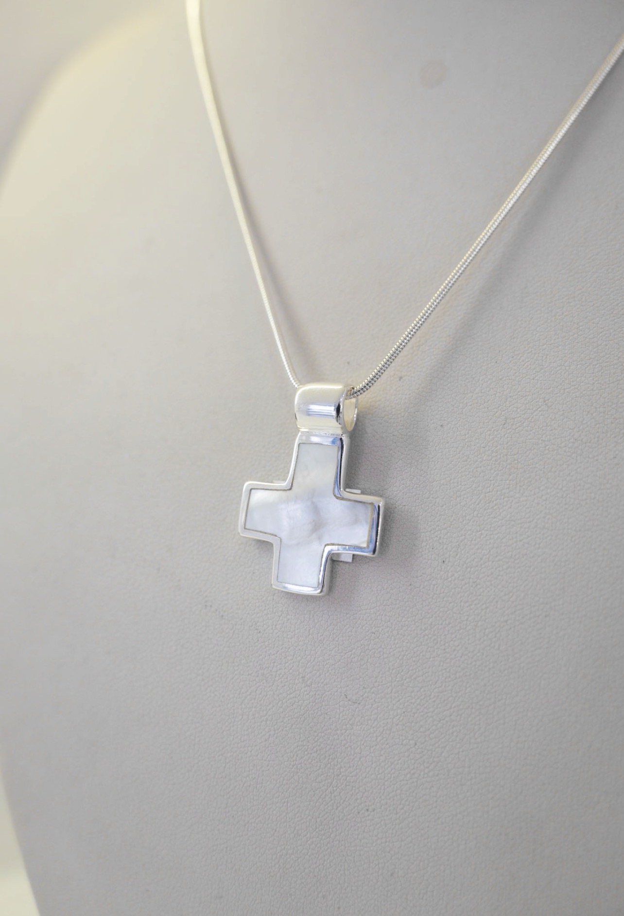Set cadena de plata + colgante de cruz (nácar) cantidad
