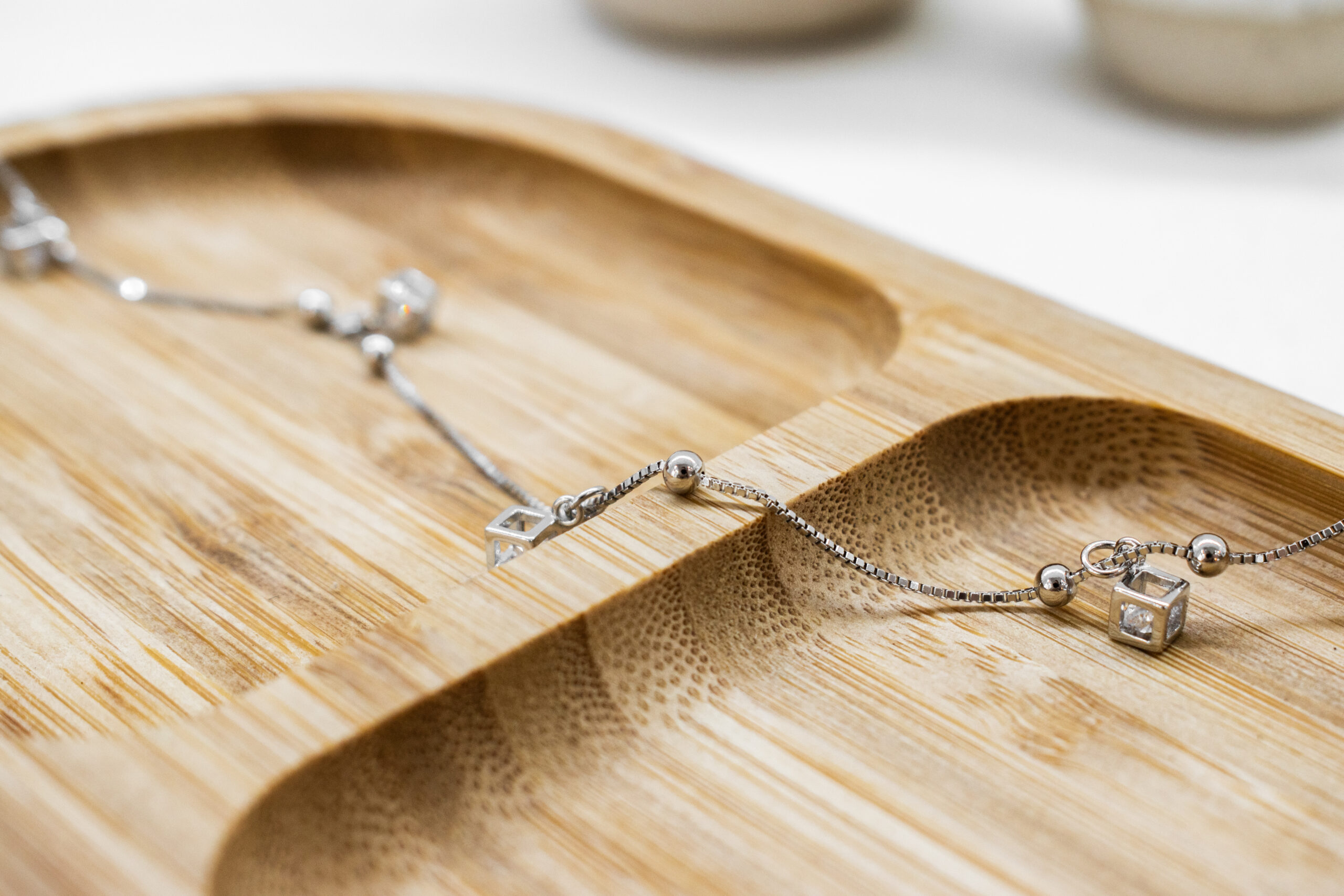 Tobillera de plata con Circonias (modelo Cubo)